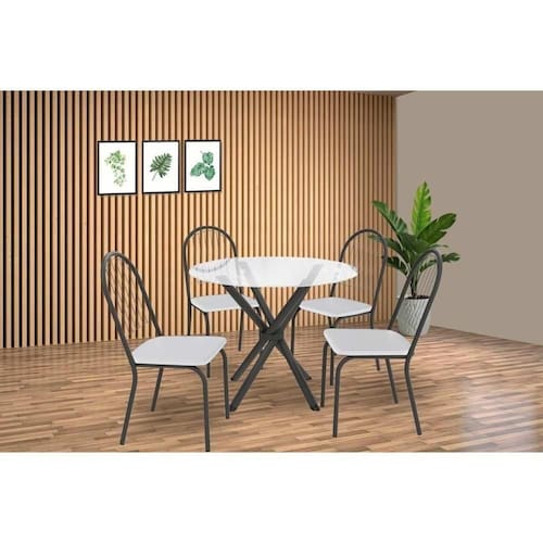 Conjunto: Mesa De Cozinha Volga C/ Tampo De Vidro 95cm E 4 Cadeiras Noruega Preto - Branco - Kappesberg