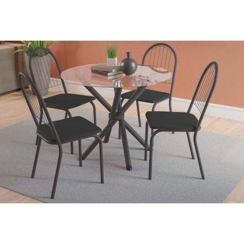Cadeira Sala de Jantar Noruega 4C077PRF Aço Kit 4 Uni Preto/Courano Preto - Kappesberg