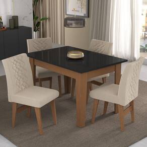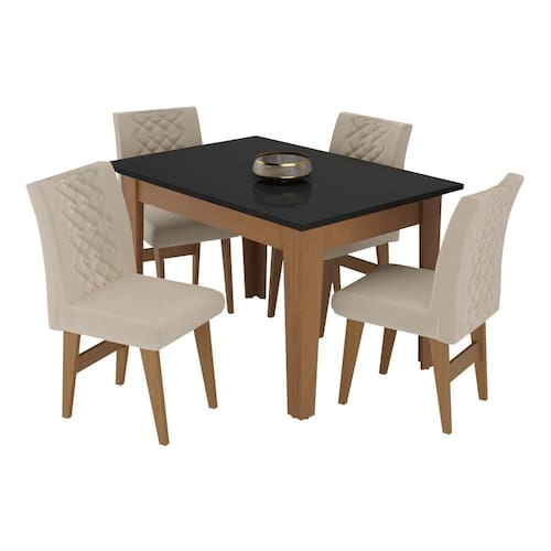 O Conjunto Mesa de Jantar 120 cm com 4 cadeiras Rio Multimóveis é uma ótima opção para completar sua cozinha ou sala de jantar. Com design clean, combina com os mais diversos estilos de decoração e possui acabamento acetinado (cerca de 20% de brilho), que garante maior durabilidade, além de um acabamento superior. A mesa possui espaço para 4 lugares (tamanho do tampo: 120x80cm), é produzida em MDP/MDF e o tampo suporta até 40 kg. As cadeiras, com pés em MDF, suportam até 110 kg e possuem assento com espuma densidade 20 e revestimento em tecido Veluplus, que garante maior resistência e durabilidade, além de um toque macio.