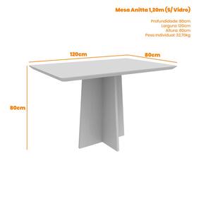 O Conjunto Sala de Jantar Mesa Anitta 1200x800 com 4 Cadeiras Ana Ypê/Off White/Ja03 - New Ceval, conta com a estrutura em Mdf, tampo de MDF 25mm com vidro 3mm, e cadeiras com estrutura em Madeira e com assento e encosto estofados.