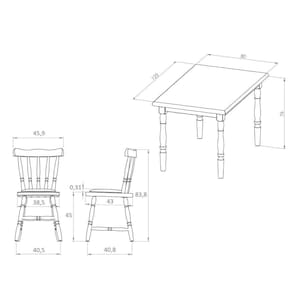 Dimensões do produto montado: Mesa - Altura: 76cm | Largura: 125cm | Profundidade: 80cm Cadeiras - Altura: 83,8cm | Largura: 45,9cm | Profundidade: 43cm *Você pode consultar as medidas detalhadas na imagem técnica do produto.