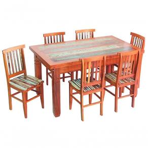 Conjunto Mesa De Jantar 1,5m 6 Cadeiras Mineira Madeira Maciça Com Pátina CONJUNTO MESA DE JANTAR 1,5M 6 CADEIRAS MADRI EM MADEIRA DE DEMOLIÇÃO COM PÁTINA Há meia década no mercado, a MHM Móveis vem se destacando no ramo de móveis em todo o . Isso se dá por conta de seu compromisso e responsabilidade social com seus clientes, buscando sempre usar materiais de qualidade para oferecer um melhor produto trazendo assim, mais requinte e sofisticação para qualquer ambiente. Além de uma equipe de produção especializada e experiente, nós possuímos um time de colaboradores voltados 100% para o . Nossos produtos são fabricados com madeira maciça de lei, o que garante mais durabilidade e resistência, acabamento com verniz especial, além de todo cuidado, carinho e amor no manuseio do móvel durante todo o processo de produção. Essa é para você que ama reunir a família para aquele almoço top de domingo, ou para você que sempre reúne os amigos em casa para um churrasquinho, nossas mesas tornam cada momento desses ainda mais especiais.Produzido 100% com madeira maciça e envernizada com produtos de qualidade, qualquer momento se torna inesquecível com esse item que além de funcional deixa qualquer ambiente ainda mais charmoso!!! FICHA TÉCNICA DO PRODUTO: MESA:Comprimento: 150 cmLargura: 90 cmAltura: 80 cmPeso: 38 kgCor: Pátina CADEIRA:Assento: 44x44 cmAltura total: 92 cmDistância do assento ao chão aproximadamente: 45 cm Acompanha: 1 mesa / 6 cadeirasMontagem: Montagem simples apenas dos pés da mesa. Informações Adicionais:Garantia: 90 dias contra de fabricação. Obs. A cor pode variar da foto conforme a tonalidade da madeira e iluminação.Conferir as medidas do produto antes de realizar a compra, para evitar imprevistos no momento da , certificando que o produto passará por portas, escadas ou elevadores. Nossas não incluem subida de escadas, elevador ou içamento dos produtos. Em caso de possíveis dúvidas, basta entrar em com nossa equipe, que esclarecemos tudo de forma simples, rápida e MHM Móveis agradece à preferência e ficamos imensamente gratos em poder (a), esperamos ansiosamente por sua compra!!!