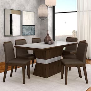 O Conjunto Sala de Jantar Nairóbi com 6 Cadeiras Cairo exibe um design elegante e sofisticado, com detalhes cuidadosamente escolhidos que criam um ambiente envolvente e acolhedor.