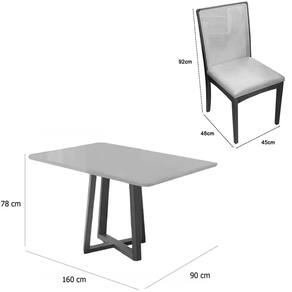 Modelo: Mesa de Jantar Bali 160x90cm com Vidro e 6 Cadeiras Lara em Linho