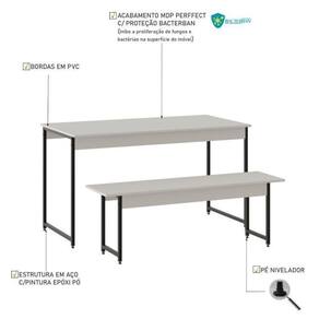 O conjunto de mesa com 01 banco da linha Active é perfeito para sua sala de jantar ou de lazer, levando o estilo de decoração industrial e contemporâneo à sua casa. Fabricado com estrutura em tubos de aço com pintura epóxi e MDP Perffect com Microban que inibe a proliferação de fungos e bactérias, além das fitas em PVC, conferindo muito mais qualidade ao seu móvel. Acompanha kit com 4 cadeiras Eames com base em madeira, um design clássico da década de 60, confortável e estilo, combina com vários estilos de decoração e está sempre em alta! A combinação perfeita para quem gosta do estilo industrial de decoração e não abre mão de design e conforto.