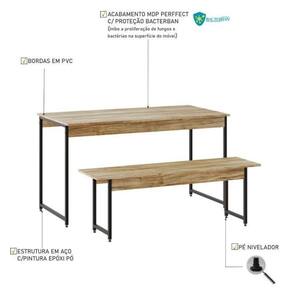 O conjunto de mesa com 01 banco da linha Active é perfeito para sua sala de jantar ou de lazer, levando o estilo de decoração industrial e contemporâneo à sua casa. Fabricado com estrutura em tubos de aço com pintura epóxi e MDP Perffect com Microban que inibe a proliferação de fungos e bactérias, além das fitas em PVC, conferindo muito mais qualidade ao seu móvel. Acompanha kit com 4 cadeiras Eames com base em madeira, um design clássico da década de 60, confortável e estilo, combina com vários estilos de decoração e está sempre em alta! A combinação perfeita para quem gosta do estilo industrial de decoração e não abre mão de design e conforto.