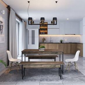 1x Conjunto Mesa de Jantar com 2 Bancos Estilo Industrial Active Carvalho Dark Necessita Montagem: Sim