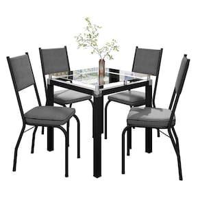 Conjunto Mesa de Jantar Tubular com 4 Cadeiras 258 Malva Tampo Vidro Incolor 75cm SF Preto Assento Platina - Combo Stock