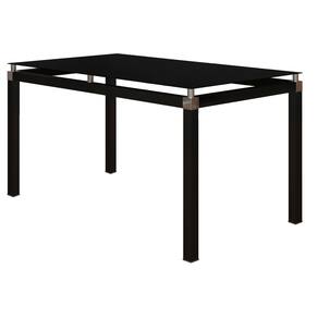 Conjunto Mesa de Jantar Tubular com 6 Cadeiras 151 Malva Tampo Vidro 140cm SF Preto Assento Platina - Combo Stock