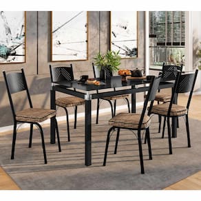 O conjunto de Mesa de Jantar Malva com 6 Cadeiras Europa além de trazer funcionalidade, um design único, é a escolha ideal para partilhar suas refeições em família.