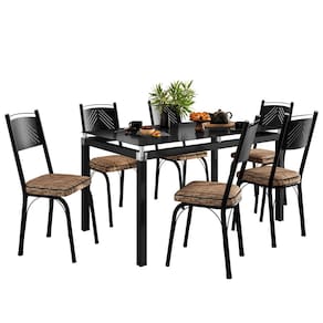 Conjunto Mesa de Jantar Tubular com 6 Cadeiras 151 Malva Tampo Vidro 140cm SF Preto Assento Rattan - Combo Stock