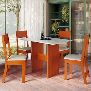 Conjunto Mesa e 4 Cadeiras Indékes Karla, Freijó e Off White