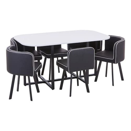 Conjunto de Mesa de Jantar com 6 Cadeiras Pizza Brescia - Marca: Just Home Collection - Modelo: Brescia - Cor Assento/Encosto: Preto - Forma: Retangular - Requer Montagem: Sim - Capacidade de Pessoas: 6 - Material da Estrutura: Metal - Cor: Branco - Peso Bruto: 64 Kg - Acabamento: Mate - : Legal Renove a decoracao da sua sala de jantar com esse elegante conjunto de mesa de jantar e 6 cadeiras em cinza. O design moderno e sofisticado da Mesa Brescia junto com as Cadeiras Pizza trarao um toque de requinte e conforto ao seu ambiente. Feito com material de alta qualidade, garantindo resistencia e durabilidade. A mesa possui formato retangular e as cadeiras possuem assento e encosto na cor preta, proporcionando um visual clean e charmoso. Reuna a familia e os amigos em torno desse conjunto e desfrute de momentos unicos a mesa. Adquira ja o seu conjunto de mesa de jantar com 6 cadeiras e transforme seu espaco Marca: Não Informado