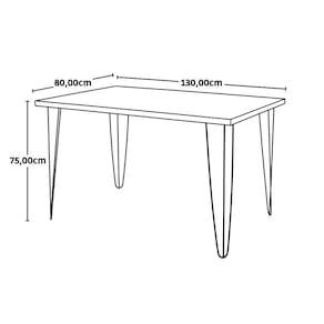 Mesa de Jantar Hairpin Legs 130x80 Natural com Cadeira Charles Eames Eiffel Preta Magazine Decor A Mesa Hairpin da marca OpenUp! Com as Cadeiras Eames Eiffel promete ser destaque na decoração do seu ambiente! A Mesa Hairpin é perfeita para completar a sua cozinha, sala de jantar e até áreas de festas, e o melhor: com muito mais praticidade. Com 130cm de largura, consegue comportar facilmente até 6 pessoas e ainda sobra espaço! Com seu design industrial, consegue deixar um ambiente mais leve por conta da estrutura no estilo Hairpin Legs, uma estrutura atual conhecida pela sua praticidade e elegância. Acompanhada da Cadeira Eames Eiffel que além do seu design clean é uma cadeira muito confortável. Seu assento possui uma leve curvatura que se molda ao corpo deixando-a mais aconchegante. A Mesa Hairpin possui seu tampo fabricado em MDF BP e sua estrutura de ferro no estilo Hairpin, materiais que garantem qualidade e durabilidade ao produto. As Cadeiras que acompanham o kit são fabricadas em polipropileno e sua estrutura é feita em madeira europeia. Aposte neste produto para transformar seu ambiente com muito bom gosto e qualidade! Características Técnicas Cadeira: Altura(cm): 82,00 Largura(cm): 45,00 Profundidade(cm): 43,00 Altura do Assento(cm): 45,00 Material da Estrutura: Madeira e Metal Material do Assento: Polipropileno Características Técnicas Mesa: Altura(cm): 75,00 Largura(cm): 130,00 Profundidade(cm): 80,00 Material da Estrutura: Ferro Material do Tampo: MDF Recomendações de Limpeza: Limpeza com pano úmido ou álcool, não deixar o MDF encharcado, não limpar com materiais abrasivos.