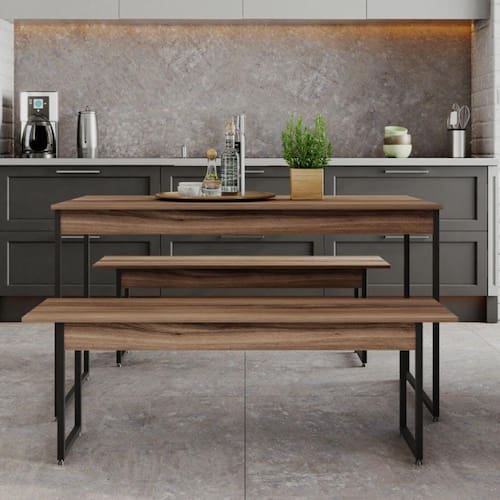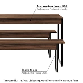 O Conjunto de Jantar da Mesa com Bancos, se destaca por seu estilo autêntico industrial, inspirado nas instalações de fábricas das grandes cidades. É o conjunto ideal para os amantes dessa tendência que mistura o rústico ao urbano, dando ainda mais personalidade ao seu espaço. Os pés da mesa e dos bancos são fabricados com Tubos de Aço e o tampo e assentos em MDP. Para um ambiente moderno é necessário escolher móveis arrojados, únicos, que irão impressionar logo à primeira vista.