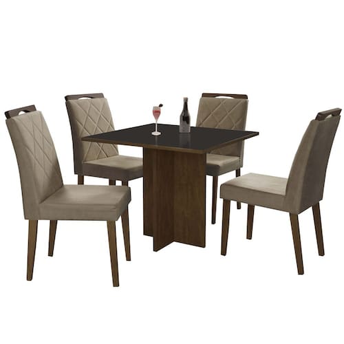 Conjunto Mesa de Jantar Los Angeles com 4 Cadeiras Califórnia 120x80cmQuer um espaço mais elegante e atraente? Então você vai se apaixonar por este lindo Conjunto Mesa de Jantar Los Angeles com 4 Cadeiras Califórnia. Composto por móveis confeccionados com materiais resistentes e de qualidade, ele é a melhor opção para completar seu lar, deixando-o muito mais sofisticado e convidativo. Demais, né? AproveiteInformações Técnicas:Medida da Mesa (A x L x P): 78cmx80cmx120cmAcabamento da Cadeira/Banco: Pintura UvAcabamento da Mesa: Pintura UvAlmofada do assento: FixaAmbiente: Sala de JantarCadeira/Banco estofada: SimCadeira/Banco suporta até: 120 kgComplexidade da Montagem: Alta: deve ser montado por um montador especializadoGarantia do Fornecedor: 03 mesesItens Inclusos: 1 Mesa com 4 CadeirasMaterial da Base da Mesa: MdfMaterial da Estrutura da Cadeira: MdfMaterial do Tampo: MdfNecessita Montagem: SimPossui Apoio Para os Pés: NãoQuantidade de Lugares: 04Recomendações de Uso, Manutenção e Limpeza: Limpeza com pano macio e levemente umedecido. Não utilizar solventes a base e de inflamáveis. Não utilizar produtos abrasivosRevestimento da Cadeira: SuedePossui Vidro: SimInformações importantes:Os objetos que ambientam as fotos não acompanham o produto.Não nos responsabilizamos pela montagem/instalação dos produtos.Montagens, desmontagens e instalações são responsabilidades do cliente.Indicamos que contrate uma empresa de montagem ou um montador de sua confiança.Além disso, favor verificar se os pés e acessórios estão dentro do forro inferior do produto.Em suma, todas as informações divulgadas sobre o produto são de responsabilidade do Fabricante.Fique atento, nossas cores podem sofrer alterações dependendo do seu monitor ou tela do seu celular.