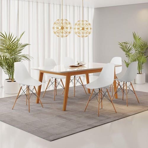 1x Kit 2 Cadeiras Base Madeira DKR Eames Branco Largura: 46,5 cm Altura: 80,5 cm Peso: 4,62 kg Profundidade: 42 cm Necessita Montagem: Sim