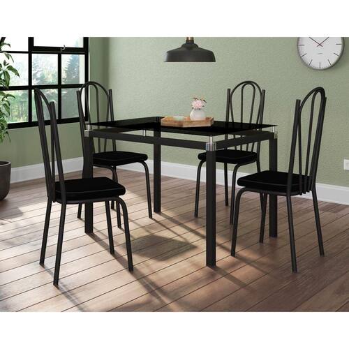 Conjunto Mesa de Jantar Malva 4118 4 Lugares Vidro Tampo Temperado Preto 107CM