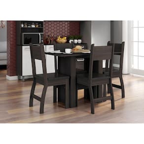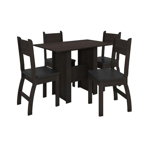 Produto: Conjunto Mesa de Jantar Milano 1,08m com 4 Cadeiras Amendoa/Preto - Poliman Conjunto Mesa de Jantar 4 lugares Milano da Poliman Móveis foi desenvolvido para trazer ainda mais beleza a sua cozinha o design aplicado junto a ergonomia do produto trará momentos agradáveis em família e amigos. A mesa possui bases com barras de travamento para mais resistência e tampo retangular com estrutura em MDP e acabamento em pintura UV garantindo qualidade de acabamento. As 04 cadeiras são em MDF/MDP 15 e 18mm com acabamento nas bordas em PS, assento revestido em courvin de alta resistência com manta de proteção interna de fácil limpeza. Disponível em padrões de cor brilho ou fosco com perfeita combinação nos mais variados ambientes. Qualidade que só a Poliman oferece em seus produtos. Informações adicionais: medida da base: A.750mm x L.385mm x P. 580mm; peso suportado da mesa: 50kg ; peso suportado da cadeira: 100kg ; densidade do assento da cadeira: D11; altura do chão até o assento: 470mm. Mesa em MDP de 15mm, cadeira com assentos com espuma revestida em courvin de alta resistência, trava traseira, Pintura UV, cadeiras com bordas em PS. Altura Mesa (mm): 770 Largura Mesa (mm): 675 Profundidade Mesa (mm): 1080 Altura Cadeira (mm): 920 Largura Cadeira (mm): 371 Profundidade Cadeira (mm): 410 Formato da Mesa: retangular Quantidade de Lugares: 4 Peso Suportado Mesa: 50 kilos Peso Suportado da Cadeira: 100 kilos Tamanho do Tampo: 1080 x 675 x 15 mm Medida da Base da Mesa: 750 x 385 x 575mm Sapatas: mesa: 04 sapatas / cadeira: 04 sapatas cada Material/Tipo de Assento: Mesa: MDP 15mm - Cadeira: MDP 15mm/MDF 18mm - Assento em courvin Acabamento: pintura UV Tipo de Pintura: fosco Conteúdo da Embalagem: Mesa com tampo, 4 cadeiras, manual de montagem e acessórios de montagem. Peso Líquido: 37,7