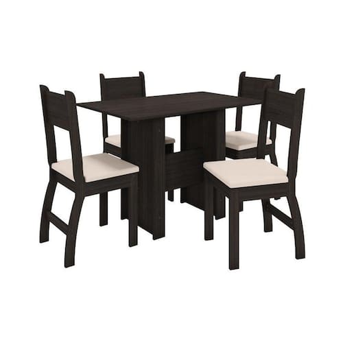 Produto: Conjunto Mesa de Jantar Milano 1,08m com 4 Cadeiras Amendoa/Savana - Poliman Conjunto Mesa de Jantar 4 lugares Milano da Poliman Móveis foi desenvolvido para trazer ainda mais beleza a sua cozinha o design aplicado junto a ergonomia do produto trará momentos agradáveis em família e amigos. A mesa possui bases com barras de travamento para mais resistência e tampo retangular com estrutura em MDP e acabamento em pintura UV garantindo qualidade de acabamento. As 04 cadeiras são em MDF/MDP 15 e 18mm com acabamento nas bordas em PS, assento revestido em courvin de alta resistência com manta de proteção interna de fácil limpeza. Disponível em padrões de cor brilho ou fosco com perfeita combinação nos mais variados ambientes. Qualidade que só a Poliman oferece em seus produtos. Informações adicionais: medida da base: A.750mm x L.385mm x P. 580mm; peso suportado da mesa: 50kg ; peso suportado da cadeira: 100kg ; densidade do assento da cadeira: D11; altura do chão até o assento: 470mm. Mesa em MDP de 15mm, cadeira com assentos com espuma revestida em courvin de alta resistência, trava traseira, Pintura UV, cadeiras com bordas em PS. Altura Mesa (mm): 770 Largura Mesa (mm): 675 Profundidade Mesa (mm): 1080 Altura Cadeira (mm): 920 Largura Cadeira (mm): 371 Profundidade Cadeira (mm): 410 Formato da Mesa: retangular Quantidade de Lugares: 4 Peso Suportado Mesa: 50 kilos Peso Suportado da Cadeira: 100 kilos Tamanho do Tampo: 1080 x 675 x 15 mm Medida da Base da Mesa: 750 x 385 x 575mm Sapatas: mesa: 04 sapatas / cadeira: 04 sapatas cada Material/Tipo de Assento: Mesa: MDP 15mm - Cadeira: MDP 15mm/MDF 18mm - Assento em courvin Acabamento: pintura UV Tipo de Pintura: fosco Conteúdo da Embalagem: Mesa com tampo, 4 cadeiras, manual de montagem e acessórios de montagem. Peso Líquido: 37,7