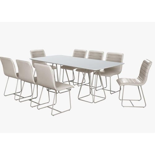 - O conjunto contém: 1 mesa Milão e 8 cadeiras Veneza;