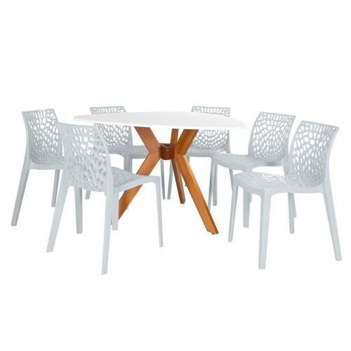 Conjunto Mesa de Jantar Orgânica Nina 120cm Branca com 6 Cadeiras Gruvyer