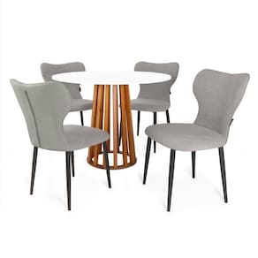 Conjunto Mesa de Jantar Redonda Talia Amadeirada com 4 Cadeiras Estofada Jacobsen