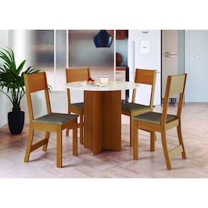Cadeiras: - Estrutura em MDF com travas reforçadas, proporcionando segurança e resistência. - Assento estofado revestido em tecido suede macio e confortável. - Acabamento fosco para um visual sofisticado. - Sapatas plásticas antiumidade que protegem contra desgaste e prolongam a vida útil. - Suportam até 120kg em cada.