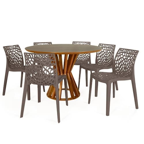 MDF, Madeira maciça, PolipropilenoConjunto Mesa de Jantar Redonda Cecília 120cm com 6 Cadeiras Gruvyer