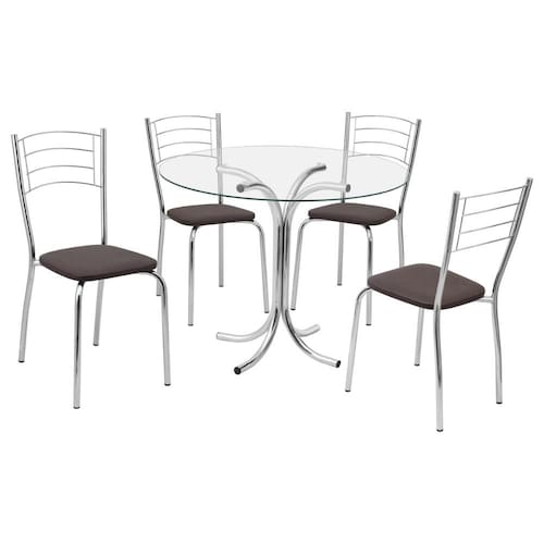 Renove seu ambiente com o Conjunto Mesa de Jantar Redonda com Vidro 80cm com 4 Cadeiras Multimóveis CR50138! Com estrutura em aço carbono cromado, oferece resistência para o dia a dia e sofisticação para o seu lar. O tampo da mesa de vidro 5mm suporta até 30kg, perfeito para refeições elegantes em família ou encontros com amigos. As 4 cadeiras, com encosto aramado e assento estofado em espuma D20 com material sintético, garantem conforto e beleza, suportando até 80kg cada.
