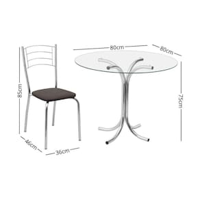 Dimensões do Produto Montado: Mesa: Altura: 75cm | Largura: 80cm | Profundidade: 80cm Cadeira: Altura: 85cm | Largura: 36cm | Profundidade: 46cm *Você pode consultar as medidas detalhadas na imagem técnica do produto.