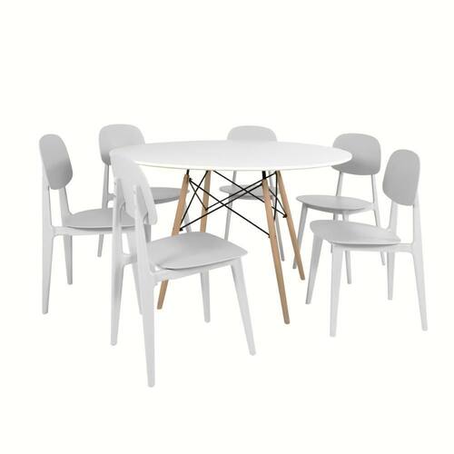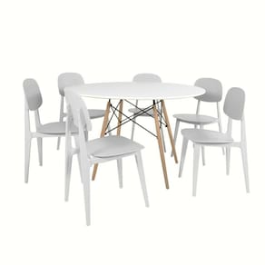 Conjunto Mesa de Jantar Redonda Eiffel Branca 120cm com 6 Cadeiras Itália