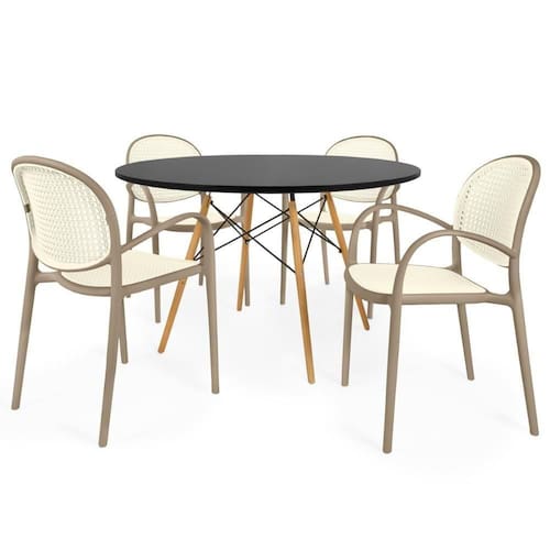Apresentamos a Mesa de Jantar Redonda Eiffel com as Cadeiras Roma com Braço, um elegante e sofisticado móvel que trará um toque de estilo e funcionalidade para a sua sala de jantar! Com design moderno e clean, este conjunto se destaca pela sua versatilidade e sofisticação do ambiente.
