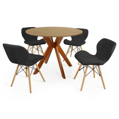 Conjunto Mesa de Jantar Redonda Marci 100cm com 4 Cadeiras Eiffel Slim