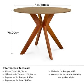 > Material da Estrutura da Mesa: Madeira Maciça Eucalipto