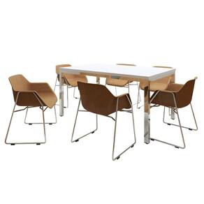Conjunto Mesa de Jantar Retangular 160cm X 85cm Smart com 6 Cadeiras Lodelô Cromado/ Branco/Serragem