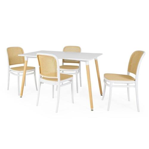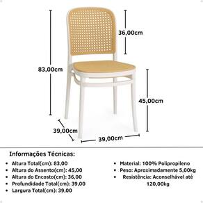 Este conjunto inclui 4 Cadeiras Roma, proporcionando conforto e estilo para seus convidados. As cadeiras apresentam um encosto que oferece suporte adequado às costas durante as refeições, enquanto o acabamento sofisticado inspirado no rattan adiciona um toque de sofisticação ao ambiente.