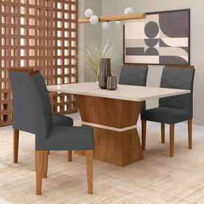A Mesa com 4 Cadeiras Denali, perfeita para quem busca design moderno e versátil Cadeiras confortáveis ??e resistentes, garantindo durabilidade.