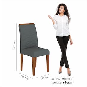 Detalhes Técnicos das Cadeiras -Assento e Encosto Tapeçados, Estofados e Fixos -Peso Suportado da Cadeira:90KG -Facilidade da Montagem:Média -Tonalidade da Cadeira:Freijó/Camurça Cinza -Espuma do Encosto:D14 -Espuma do Assento:D16 -Tipo de Pintura:UV Texturizada -Material da Estrutura:MDF 25/18mm -Medida da Cadeira:100CMx44CMx50CM