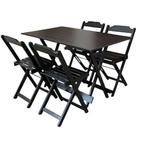 Madeira, MDFConjunto Mesa Dobrável 1,20m com Tampo em MDF Ultra Plus e 4 Cadeiras Dobráveis Preto -