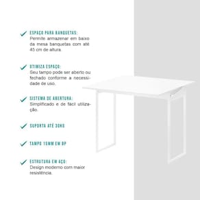 Medidas mesa aberta: Largura: 92 cm | Altura: 75 cm | Profundidade: 89 cm