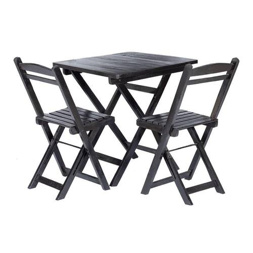 AS IMAGENS SÃO MERAMENTE ILUSTRATIVAS E PODEM SOFRER VARIAÇÕES DE COR E PEQUENOS DETALHES DE ACORDO COM O SEU MONITOR, ILUMINAÇÃO DO AMBIENTE E ATÉ MESMO A SUA PERCEPÇÃO VISUAL.Conjunto Mesa DobrÃvel com 2 Cadeiras 100% Madeira de Lei Ypà Preto