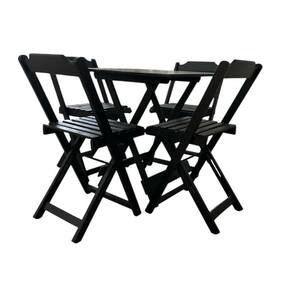 Conjunto Mesa Dobrável com Tampo em MDF Ultra Plus e 4 Cadeiras Dobráveis Preto -