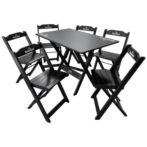Conjunto Mesa Dobrável Madeira 110x70 Com 6 Cadeiras Personalizada Hei Preta - Tarimatã
