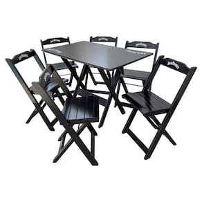 Tipo: Conjunto Mesa 6 Cadeiras de Madeira Modelo: Dobrável Cor: Preto Estrutura: Base em madeira maciça de alta resistência. Tampo: MDF com acabamento de alta qualidade.