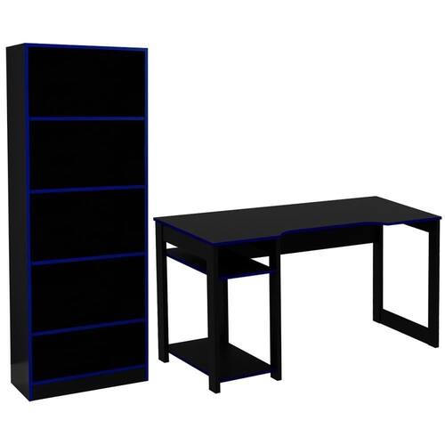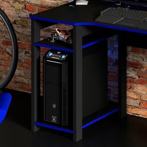 Conjunto Mesa E Armario Gamer Me4141 Me4152 Preto Azul Tecno Mobili Preto Azul