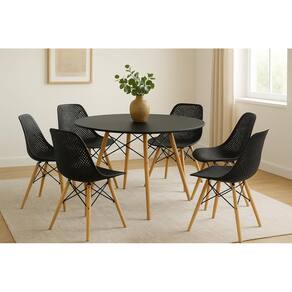 O Kit Mesa Jantar Eiffel 120cm + 6 Cadeiras Charles Eames Colméia possui um design exclusivo, belo e cheio de charme. Fabricado em materiais de elevada procedência, as cadeiras deste conjunto contam com um modelo especial, desenvolvido na metade do século passado pelo casal Eames. Estas cadeiras de curvatura ergonômica são chamadas também de cadeira DSW (Dining, Side, Wood).