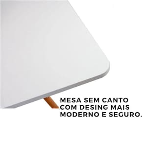Projetada para oferecer beleza e praticidade, a mesa possui tampo em MDF de alta resistência com acabamento sofisticado e cantos arredondados que trazem suavidade e ao ambiente. Seus pés em madeira natural no estilo Eiffel são robustos, estáveis e proporcionam um charme escandinavo inconfundível.