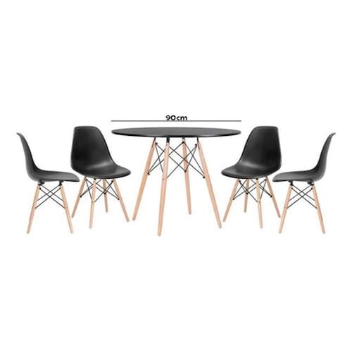 Mesa de Jantar Redonda 90cmCor: PretaDiâmetro: 90cmAltura: 75cmTampo em MDFOBS: Montagem não inclusa. Acompanha manual de instruções e chave para a montagem.4 Cadeiras Eiffel Charles Eames DKR PretasAltura Total: 84,00 (cm)Altura do Assento: 45,00 (cm)Largura: 44,00 (cm)Profundidade: 43,00 (cm)Material da Estrutura: Madeira e MetalMaterial do Assento: PolipropilenoPeso Aproximado: 3.90 (Kg)Resistência: Aconselhável até 120 (Kgs)