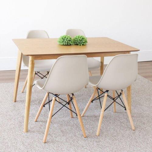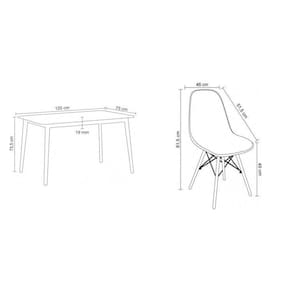 A Mesa Finlândia em madeira é ideal para quem busca elegância e praticidade, seu design rústico garante o detalhe que falta na decoração da sua casa. O conjunto com 4 cadeiras Eiffel completa o kit e garante o custo benefício para transformar o estilo divertido da sua casa com muita praticidade e toques de design. Conjunto composto por: uma Mesa com tampo em MDF de 19 mm, base em madeira seringueira + 4 cadeiras com assento em PP e base em madeira e aço pintado. Suporta Até (kg): 120 kg Possui Rodízio: Não Altura do Conjunto: 81.5 cm Ambiente: null Ambiente Principal: Sala de Jantar Cor: Nude/Marroml Informação Complementar: 1x Mesa de Jantar Retangular Finlândia MarromlLargura: 120 cmAltura: 75 cmPeso: 19 kgNecessita Montagem: Sim1x Conjunto 4 Cadeiras Eiffel PP Base Madeira Desmontada NudeLargura: 46 cmAltura: 81,5 cmPeso: 3,5 kgProfundidade: 51,5 cmNecessita Montagem: Sim Tamanho: